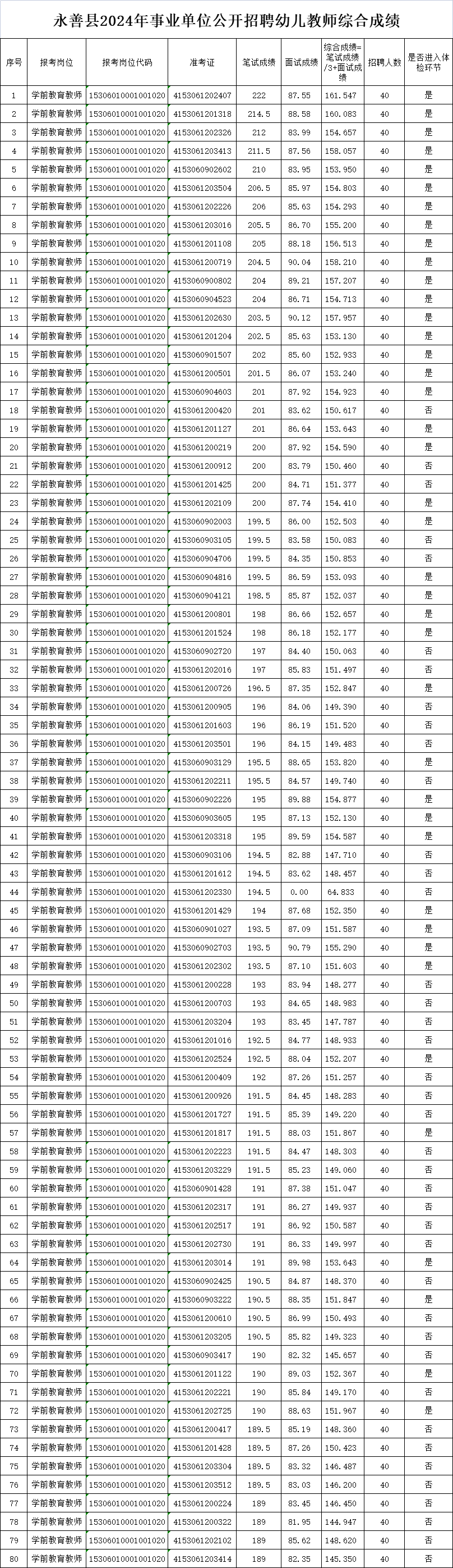根據(jù)《昭通市2024年事業(yè)單位公開招聘工作人員通告(第一號(hào))》,現(xiàn)將永善縣2024年事業(yè)單位公開招聘幼兒教師綜合成績公布如下: