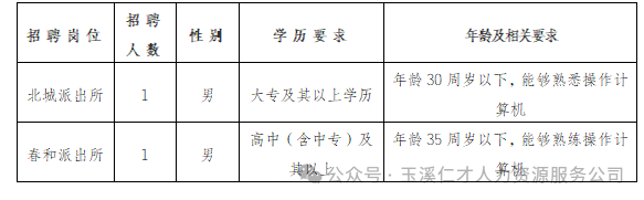 由玉溪仁才人力資源服務(wù)有限責(zé)任公司聘用并簽訂勞動(dòng)合同,由玉溪市公安局紅塔分局統(tǒng)一安排工作崗位,統(tǒng)一進(jìn)行日常管理;聘用人員的崗位職責(zé)、規(guī)章制度、工作考核、薪酬待遇等按玉溪市公安局紅塔分局的有關(guān)規(guī)定執(zhí)行。
