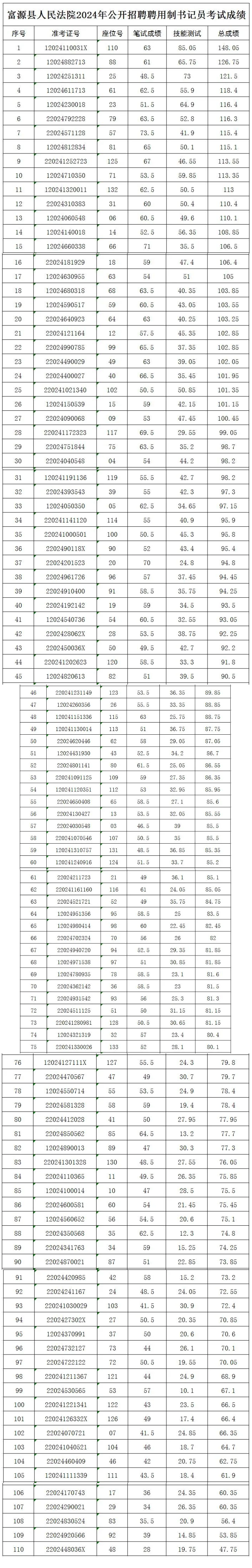 富源縣人民法院2024年公開招聘合同制書記員成績公布!