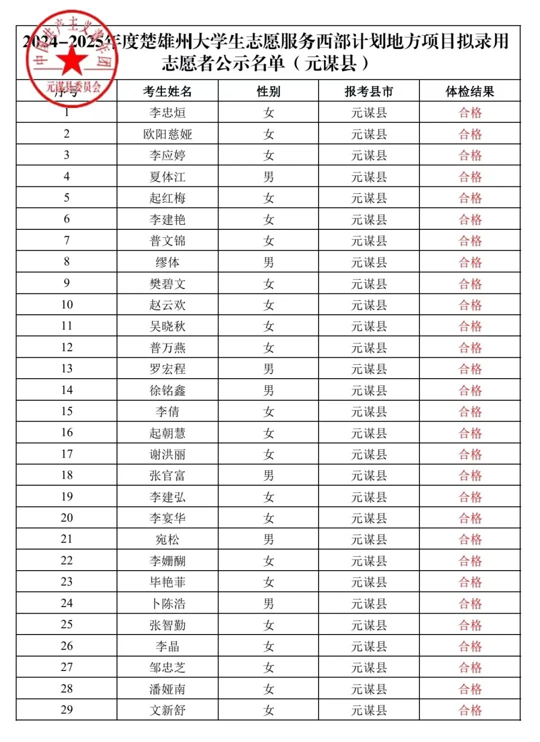 元謀縣2024-2025年度大學(xué)生志愿服務(wù)西部計(jì)劃省級(jí)地方項(xiàng)目擬錄用志愿者名單公示!