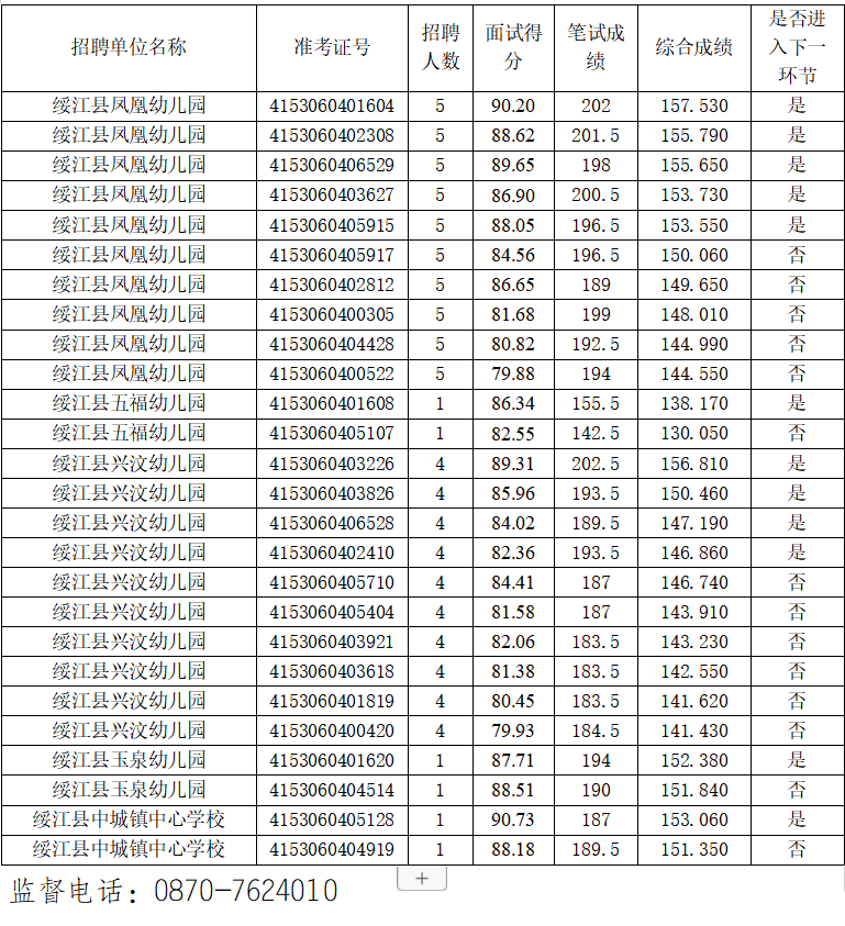 綏江縣2024年事業(yè)單位公開招聘幼兒教師綜合成績通告