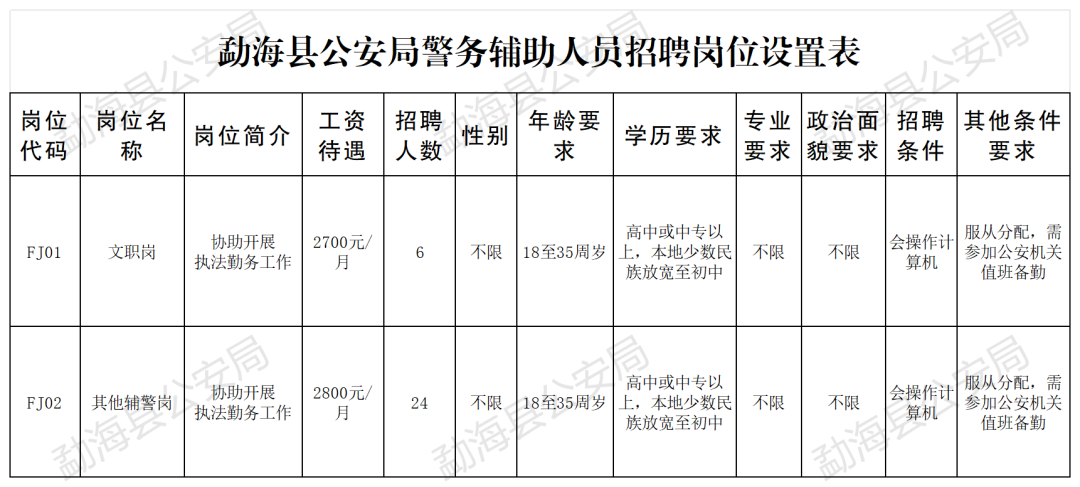 勐??h公安局警務輔助人員招聘公告