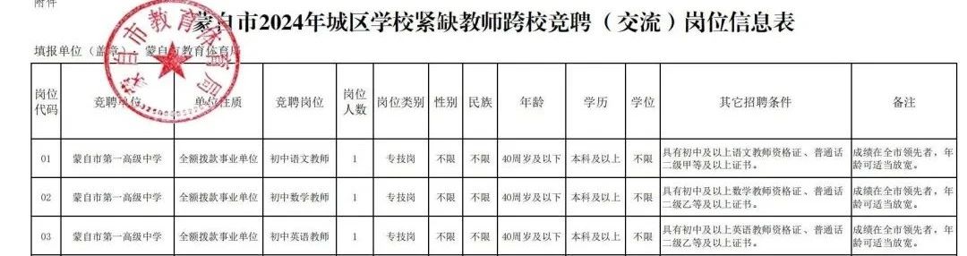 蒙自市第一高級(jí)中學(xué)關(guān)于緊缺教師崗位跨校競(jìng)聘(交流)的公告