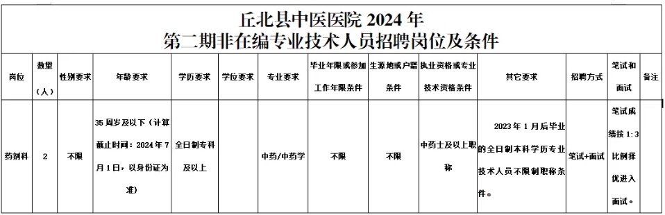丘北縣中醫(yī)醫(yī)院2024年第二期非在編專業(yè)技術(shù)人員招聘公告