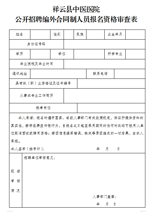 3.報(bào)名地點(diǎn):祥云縣中醫(yī)醫(yī)院人力資源管理辦公室(行政綜合樓三樓301室)。