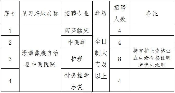 漾濞縣中醫(yī)醫(yī)院招聘見習崗位20人 大專即可報名