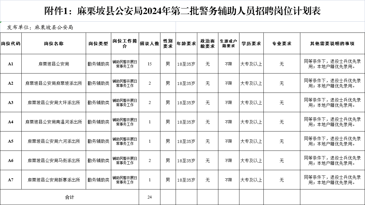 麻栗坡縣公安局2024年第二批輔警招聘公告