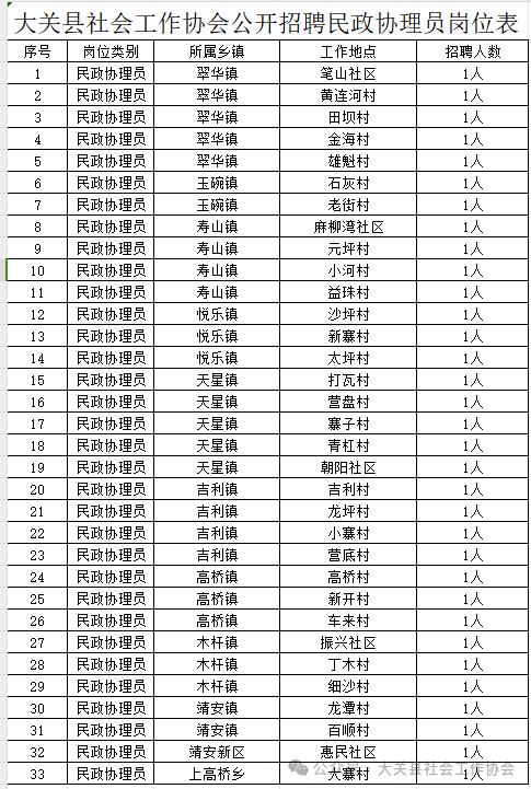 大關(guān)縣社會(huì)工作協(xié)會(huì)公開(kāi)招聘民政協(xié)理員公告