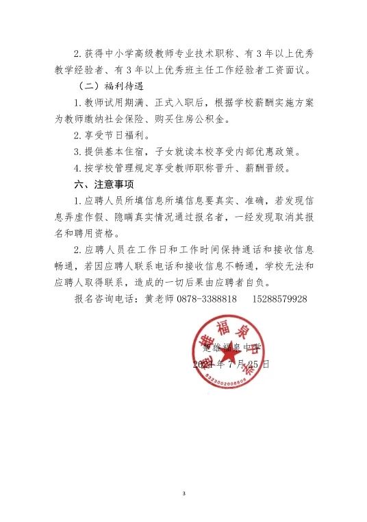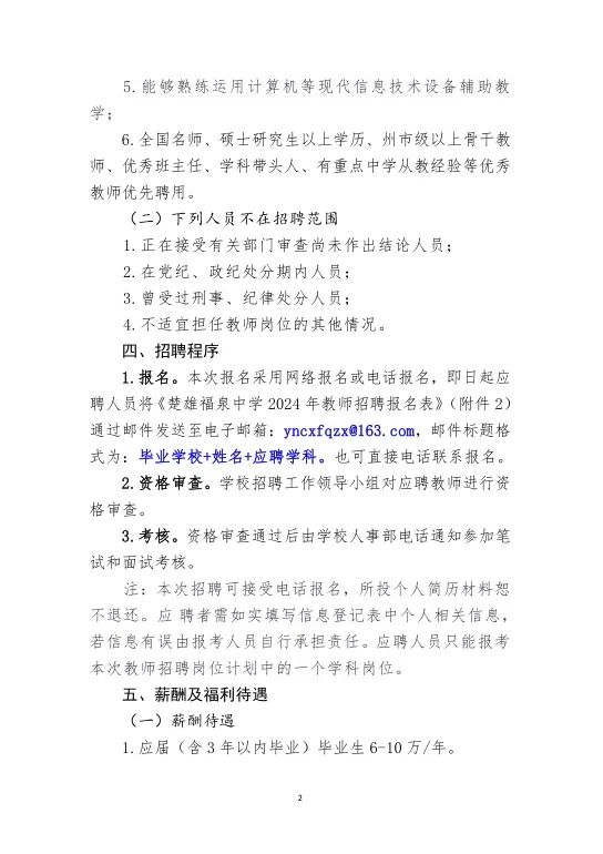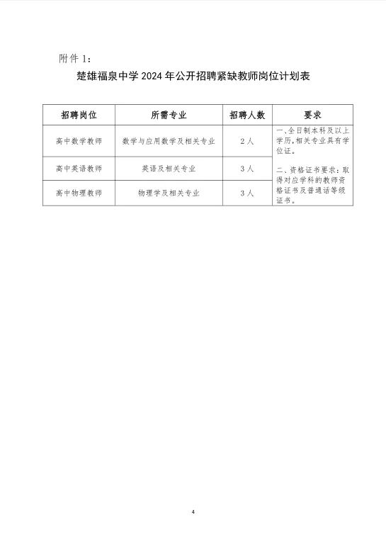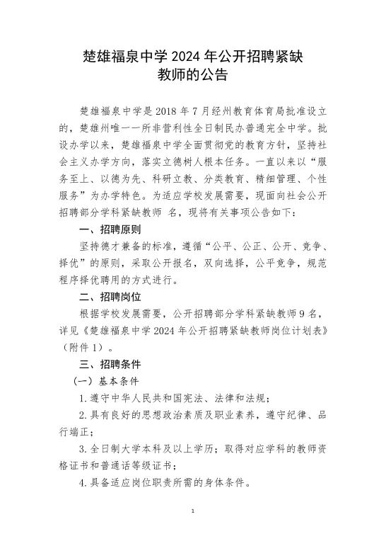 楚雄福泉中學(xué)2024年秋季教師招聘公告