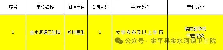 金水河鎮(zhèn)衛(wèi)生院招聘編外人員