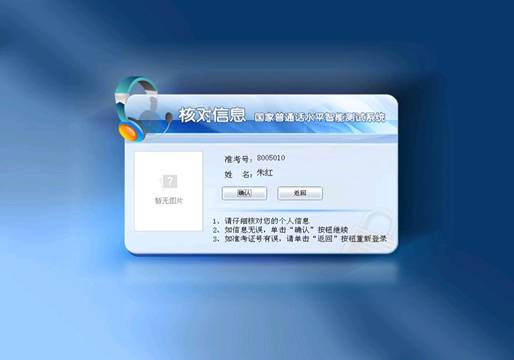 4.如其他信息有誤,請索要并填寫“信息更正單” ,交主考老師備案,然后單擊“確認(rèn)”按鈕繼續(xù)。