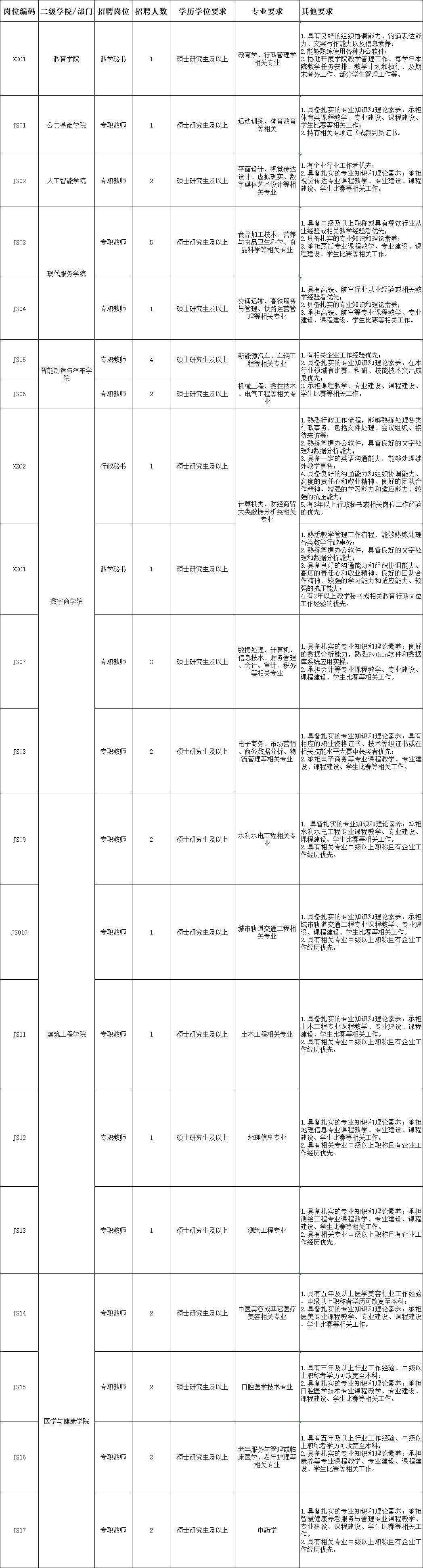 2024年下半年我校高層次人才、專(zhuān)職教師、行政人員全國(guó)招聘計(jì)劃、具體崗位及專(zhuān)業(yè)等要求如下: