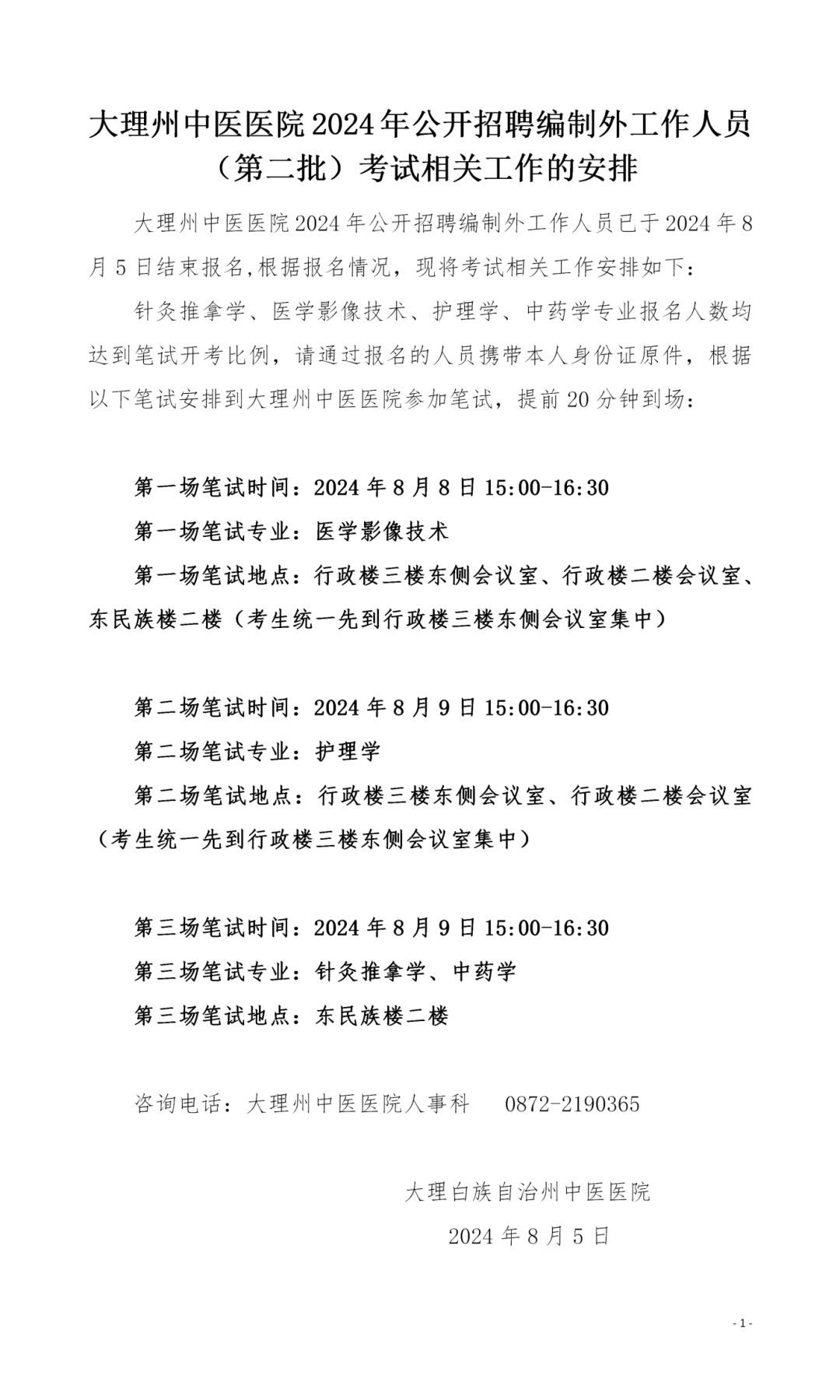 大理州中醫(yī)醫(yī)院2024年公開招聘編制外工作人員(第二批)考試相關工作的安排