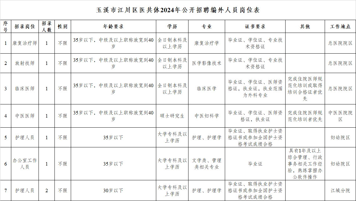 玉溪市江川區(qū)醫(yī)共體公開招聘編制外人員公告