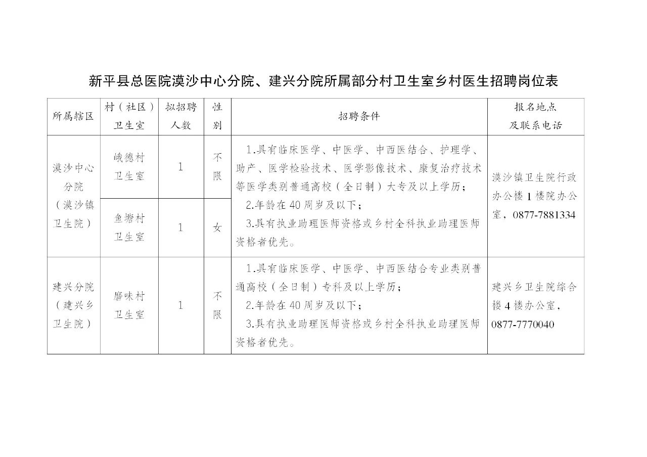 附件:新平縣總醫(yī)院漠沙中心分院、建興分院所屬部分村衛(wèi)生室鄉(xiāng)村醫(yī)生招聘崗位表