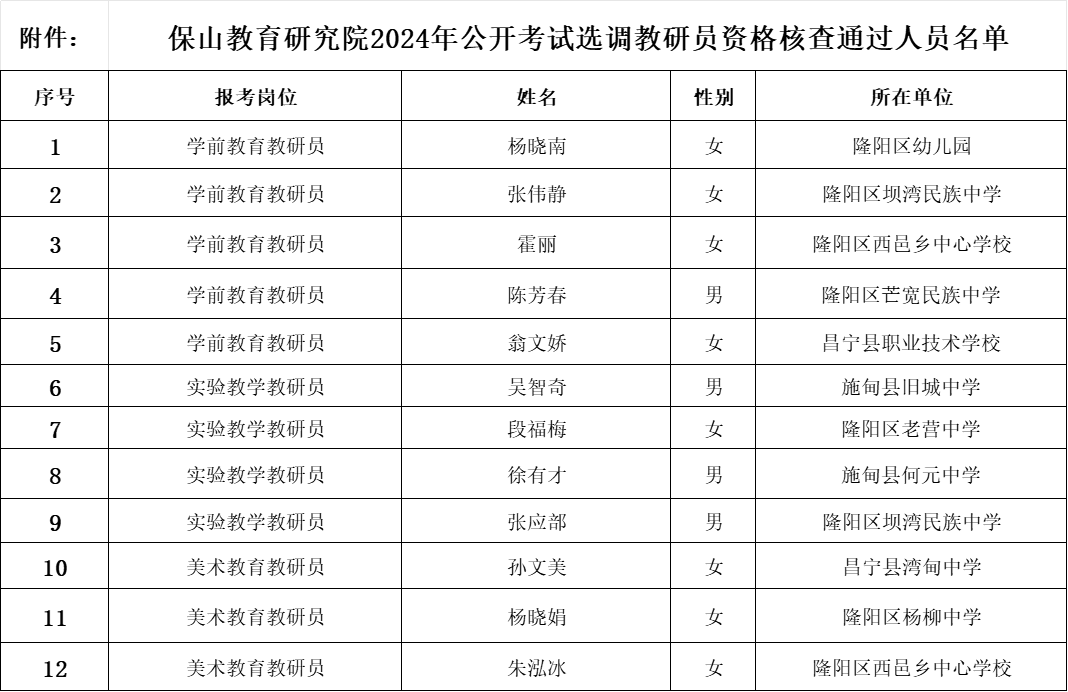 保山教育研究院2024年公開(kāi)考試選調(diào)教研員資格審核通過(guò)人員名單公示