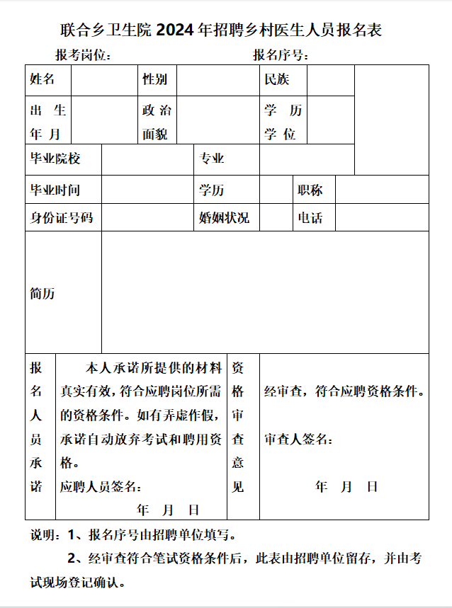 報(bào)名地點(diǎn):聯(lián)合鄉(xiāng)衛(wèi)生院3樓辦公室。