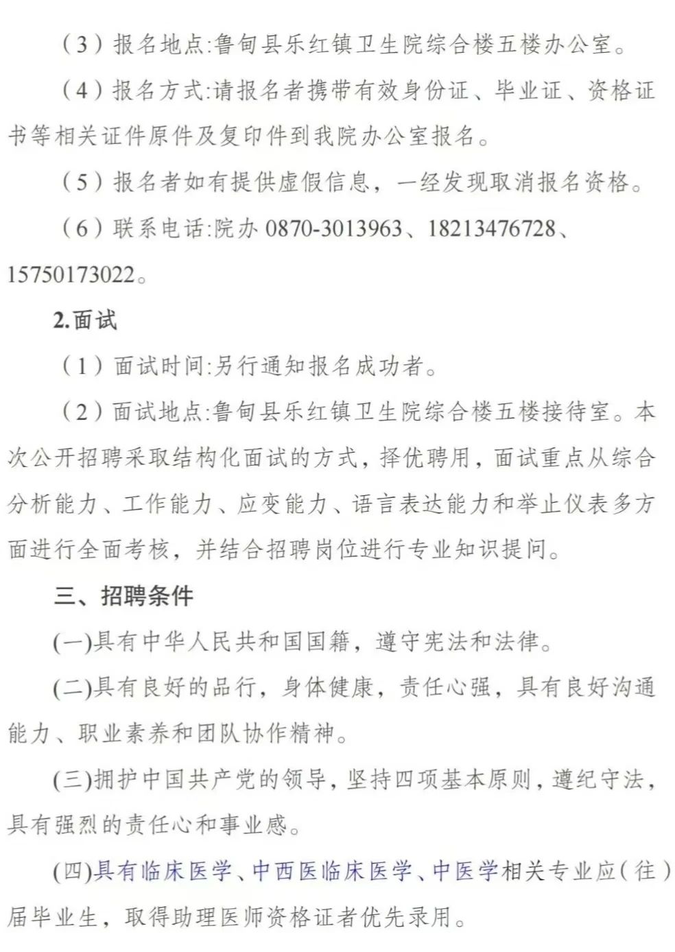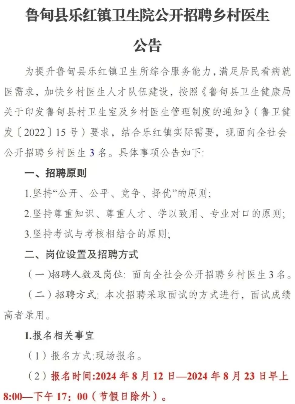 魯?shù)榭h樂紅鎮(zhèn)衛(wèi)生院公開招聘鄉(xiāng)村醫(yī)生公告