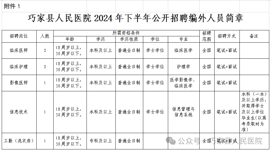 (一)崗位設(shè)置:詳見附件《巧家縣人民醫(yī)院2024年下半年公開招聘編外人員簡(jiǎn)章》。