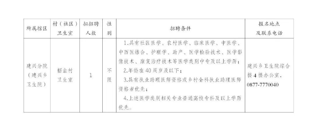 附件:新平縣總醫(yī)院漠沙中心分院、建興分院所屬部分村衛(wèi)生室鄉(xiāng)村醫(yī)生招聘崗位表