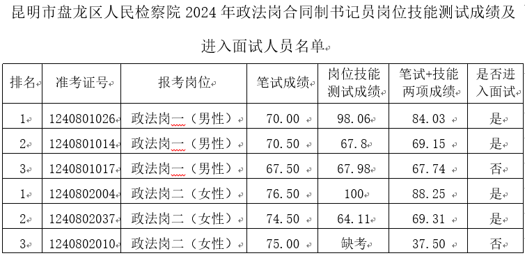 附件:昆明市盤龍區(qū)人民檢察院2024年政法崗合同制書記員崗位技能測(cè)試成績(jī)及進(jìn)入面試人員名單