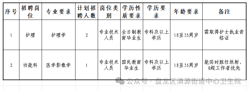 根據(jù)我院實際工作需要,盤龍區(qū)滇源街道中心衛(wèi)生院擬定面向社會公開招聘編制外專業(yè)技術(shù)人員3名,現(xiàn)將有關(guān)事項公告如下: