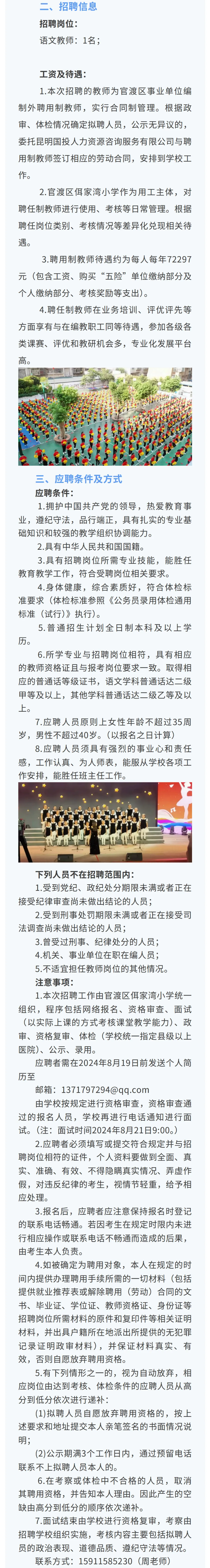 2024年昆明市官渡區(qū)關(guān)上第三小學(xué)聘用制教師招聘公告