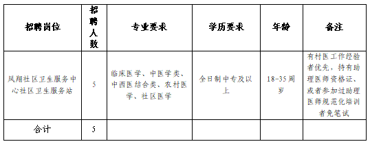 招聘鄉(xiāng)村醫(yī)生5名,詳見下表: