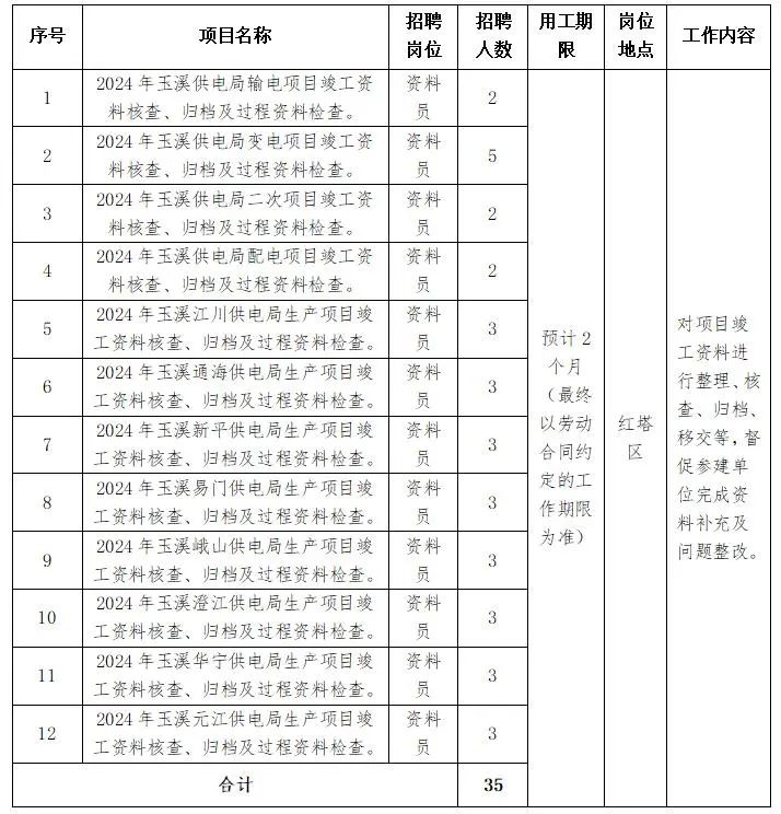 玉溪供電局成立于1996年,供電區(qū)域覆蓋玉溪1市2區(qū)6縣,供電面積1.49萬平方千米。根據(jù)業(yè)務(wù)需要,現(xiàn)面向社會公開招聘項目制用工35人。有關(guān)事項公告如下: