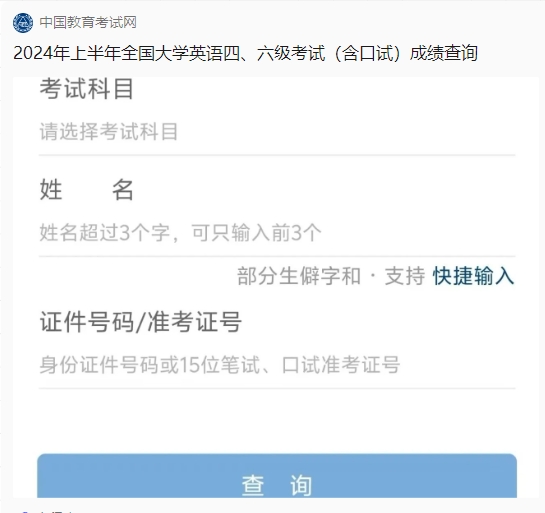 2024年上半年CET全國(guó)大學(xué)英語(yǔ)四、六級(jí)考試成績(jī)