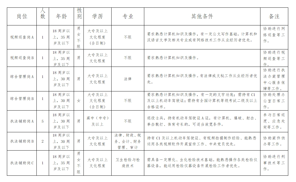 測試根據崗位需求分別進行,其中執(zhí)法輔助崗A采取體能測試方式,其余崗位采取筆試方式。