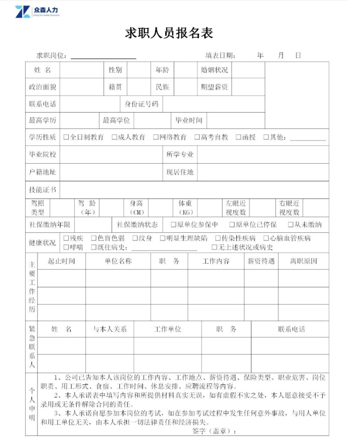 添加公司微信:19995856427,獲取《求職報(bào)名表》,將報(bào)名所需材料統(tǒng)一發(fā)至公司微信。