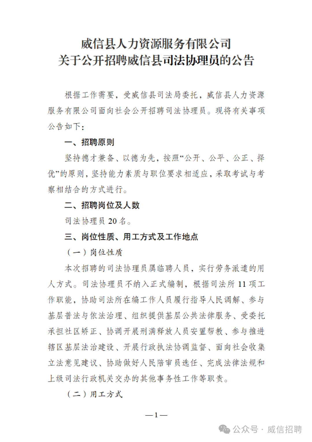 關(guān)于公開招聘威信縣司法協(xié)理員的公告