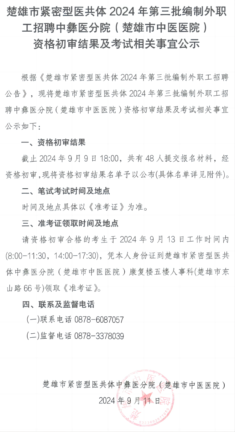 (楚雄市中醫(yī)醫(yī)院)資格初審結(jié)果及考試相關(guān)事宜公示