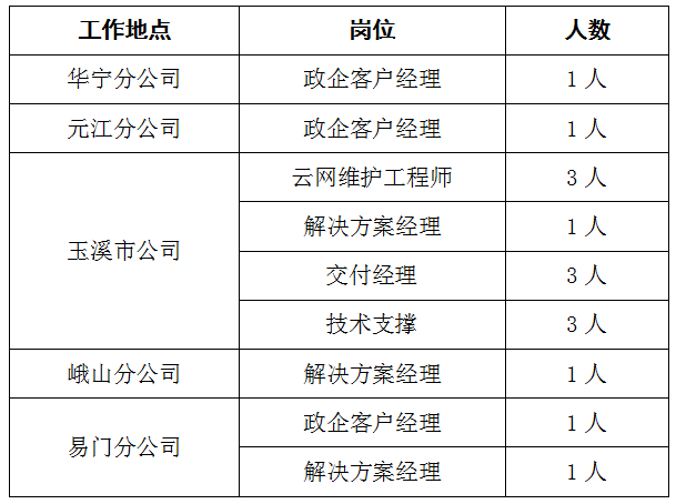 中國電信玉溪分公司外包項(xiàng)目招聘公告