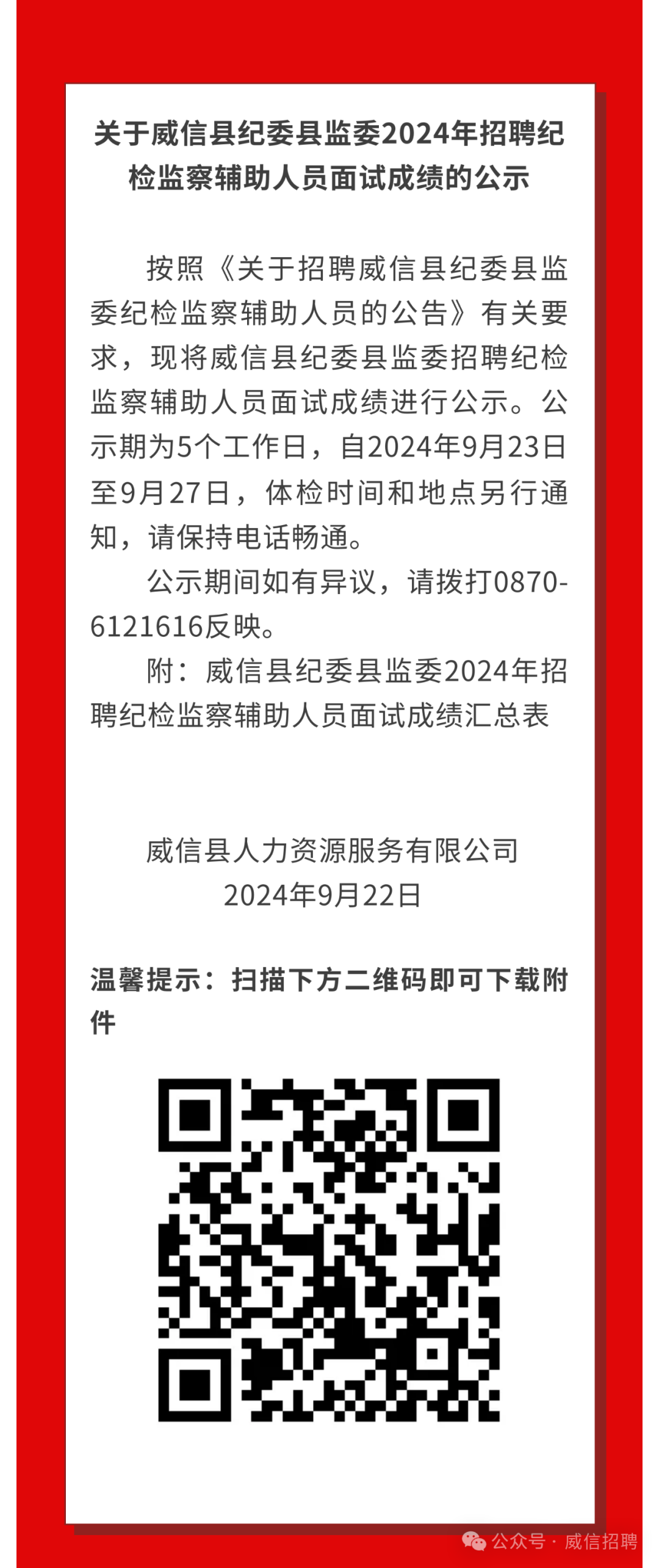 關于威信縣紀委縣監(jiān)委 2024年招聘紀檢監(jiān)察輔助人員面試成績的公示 來源:https://mp.weixin.qq.com/s/PFEx38cdfgDHSpJYw93z0w