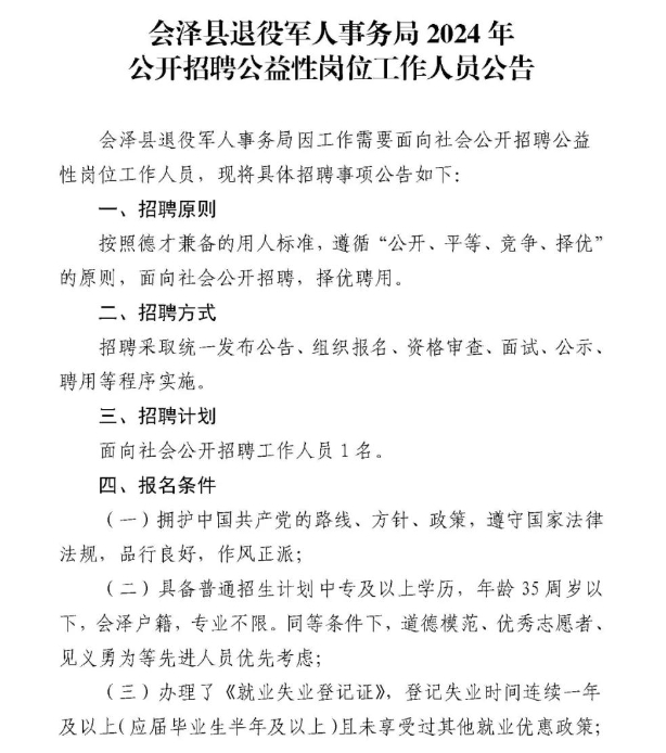 2024年曲靖市會(huì)澤縣退役軍人事務(wù)局招聘公告