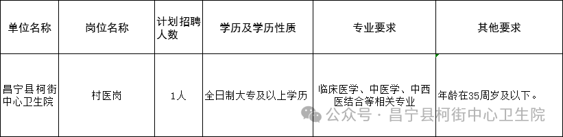 柯街中心衛(wèi)生院鄉(xiāng)村醫(yī)生招聘公告