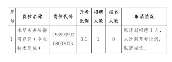 根據(jù)《云南省事業(yè)單位公開招聘工作人員辦法》(云人社發(fā)〔2016〕182號)等有關文件規(guī)定及《2024年下半年云南省水利廳部分直屬事業(yè)單位公開招聘人員公告》要求,省水利廳按照“每個崗位的繳費人數(shù)與計劃招聘人數(shù)不低于3:1方能開考。未達到3:1的,根據(jù)繳費人數(shù)予以裁減或取消。招聘緊缺急需專業(yè)崗位,經(jīng)各招聘單位申請,云南省水利廳審核同意報云南省人力資源和社會保障廳批準后可放寬開考比例。”的原則,結合此次實際報名情況,現(xiàn)將崗位裁減情況公告如下: