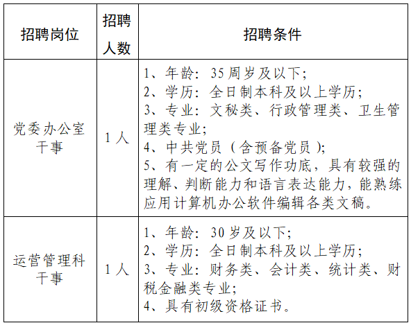 【招聘】黨委辦公室、運(yùn)營管理科需招聘干事2名