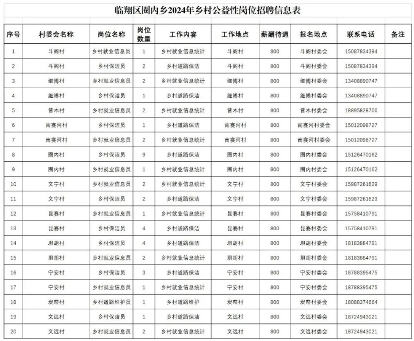 2.報(bào)名地點(diǎn):各村委會(huì),具體見(jiàn)《崗位信息表》。
