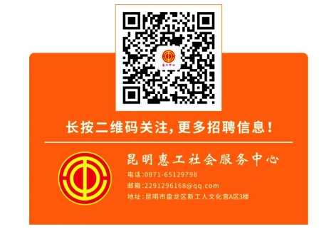 本公告最終解釋權(quán)歸昆明惠工社會(huì)服務(wù)中心所有,后續(xù)招聘相關(guān)信息,敬請(qǐng)關(guān)注“昆明惠工中心”微信公眾號(hào)。