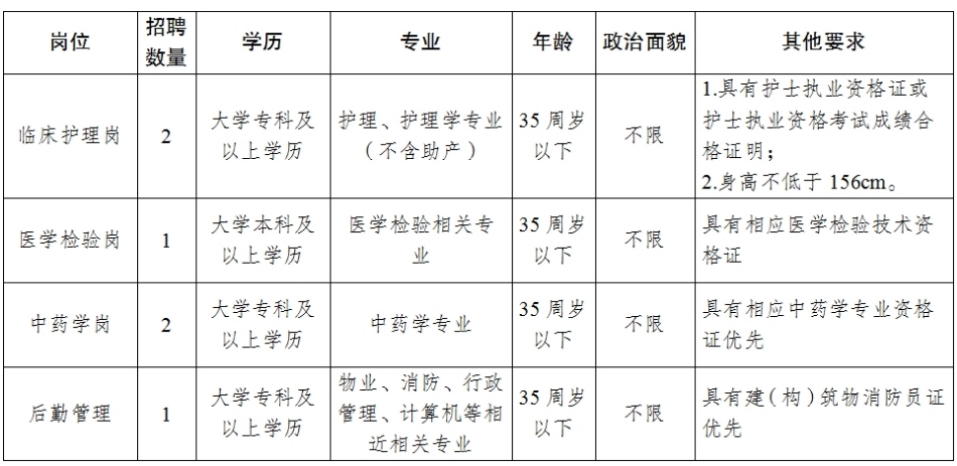 1.臨床護(hù)理崗2人