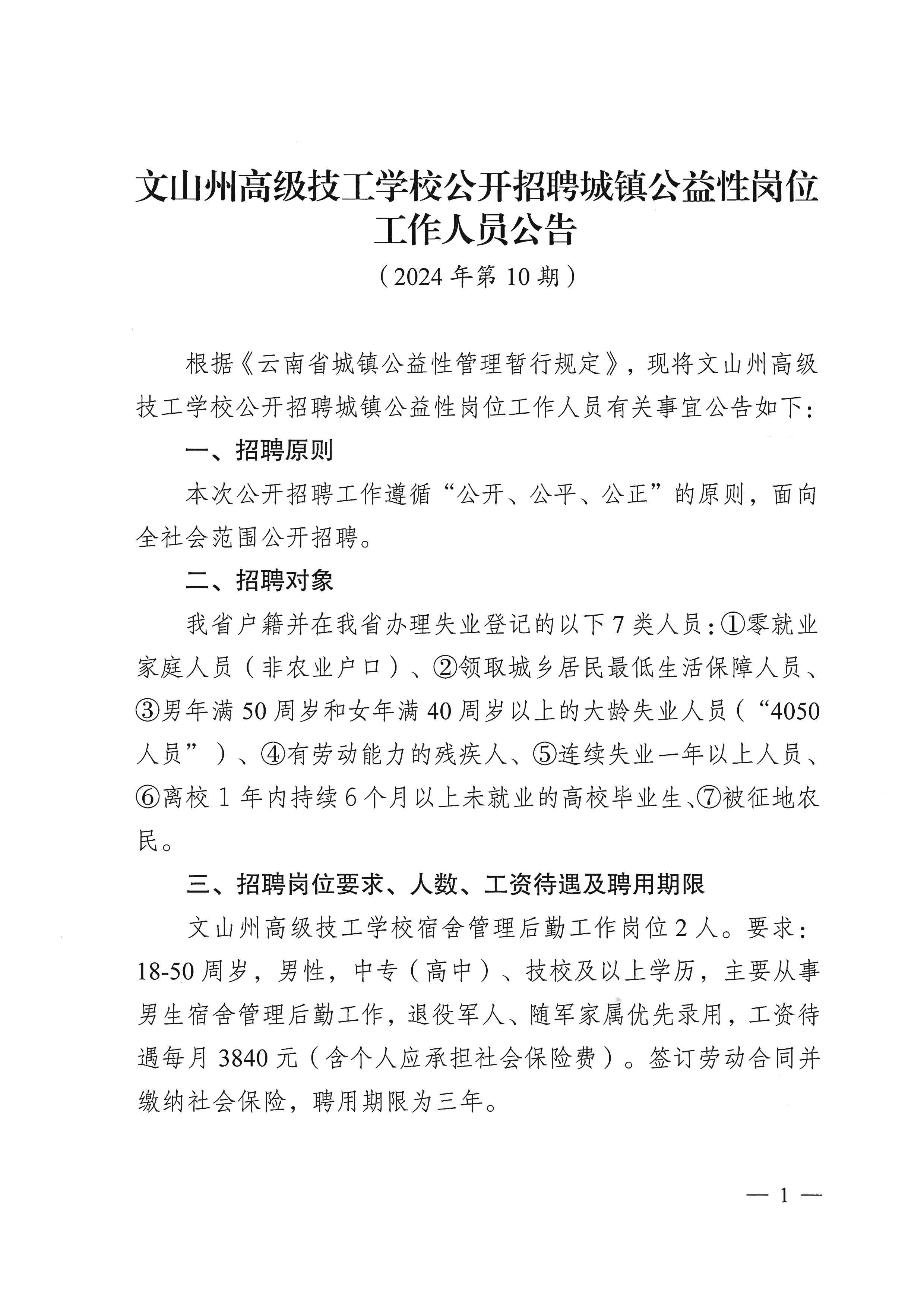 文山州高級(jí)技工學(xué)校公開(kāi)招聘城鎮(zhèn)公益性崗位工作人員公告