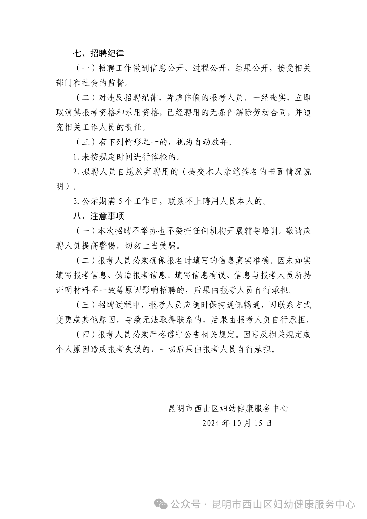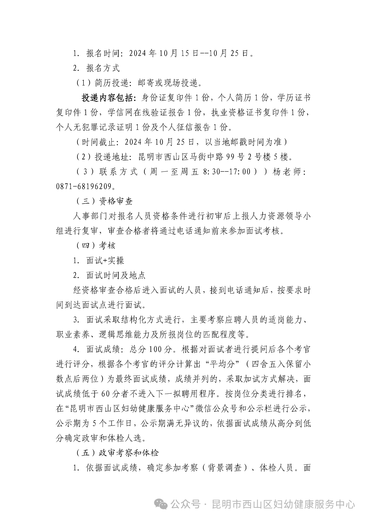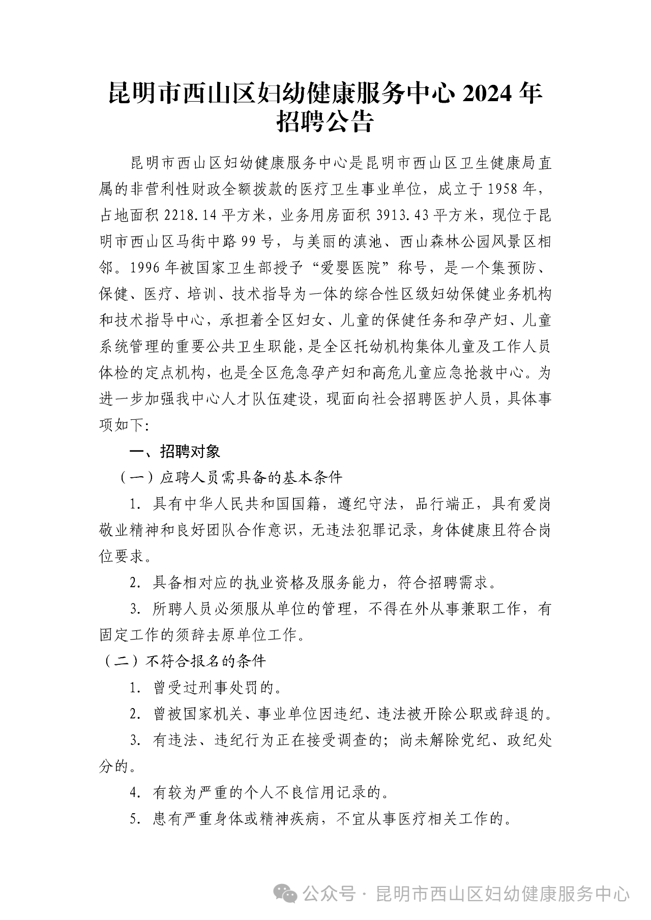 昆明市西山區(qū)婦幼健康服務(wù)中心2024年招聘公告