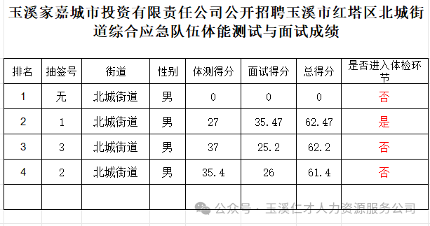 附件:玉溪家嘉城市投資有限責(zé)任公司公開招聘玉溪市紅塔區(qū)北城街道綜合應(yīng)急隊伍體能測試與面試成績