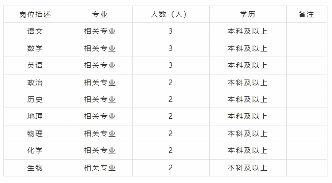 初中教師招聘崗位計(jì)劃