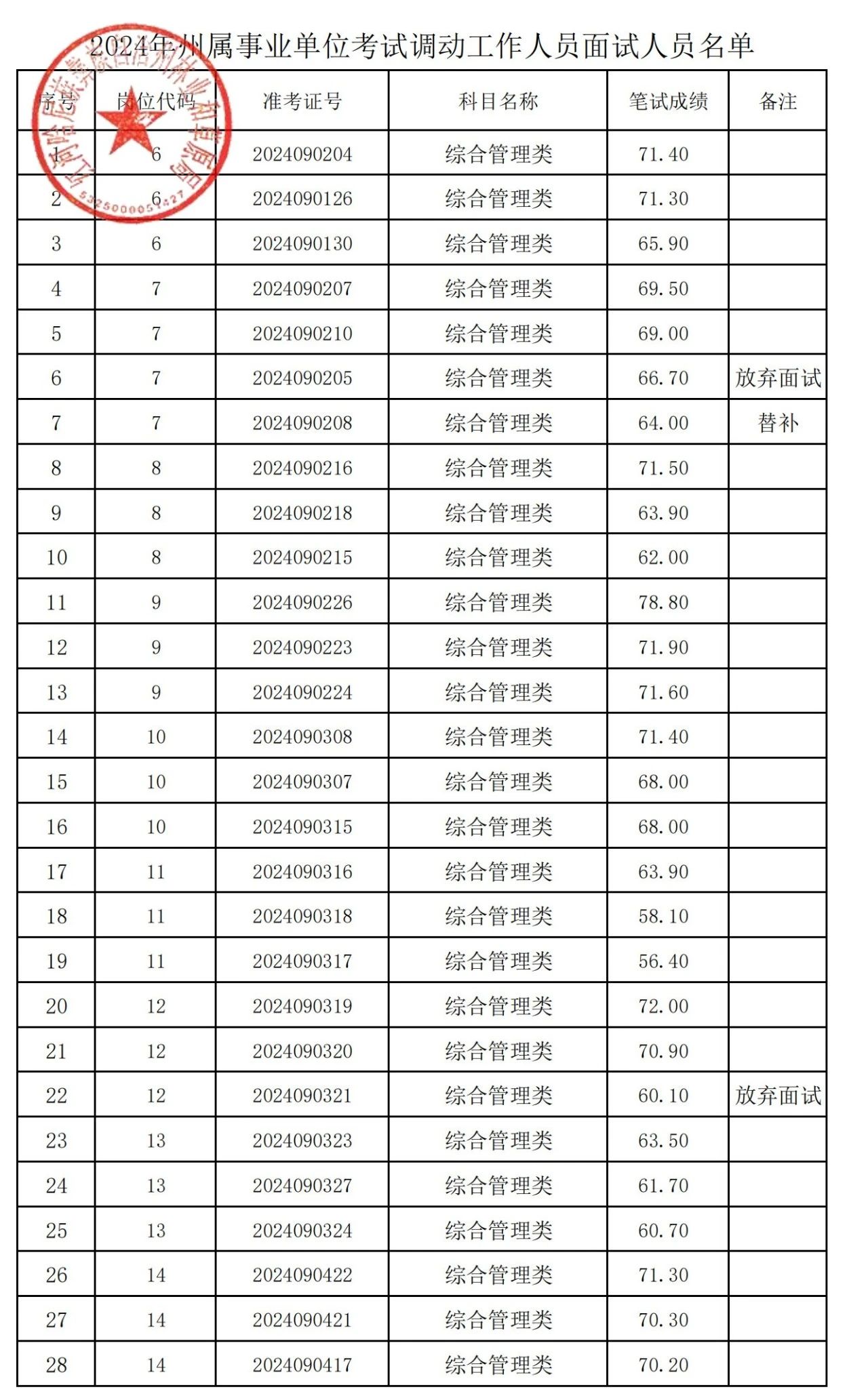 2024年考試調(diào)動工作人員面試及后續(xù)工作安排的通知