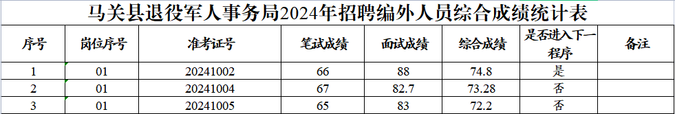 附件:馬關(guān)縣退役軍人事務(wù)局2024年招聘編外人員筆試成績(jī)統(tǒng)計(jì)表