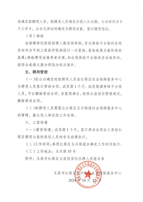 2024年紅塔區(qū)玉興街道社保中心公益性崗位招聘公告